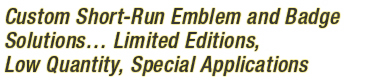 ACSCO has perfected a process that does it all for your short run custom emblem projects; not only does our process minimize tooling costs, keeping your upfront / set up production costs in check but it also produces high quality detail and graphic clarity for your custom emblem project.